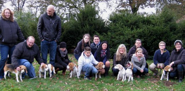 v.li.n.re. Fam.Schmidt mit Daphne u. Tante Jule,Fam.Bruns m. Don Henry, Fam.Pfetzing m. Dee jay, Rekka mit Oma Betsy u. der gaehnenden