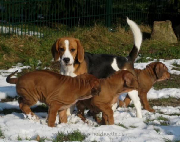 Beagle Candy von Rekkas Holzhuette mit 3 Welpchen von Kanda von Rekkas Holzhuette